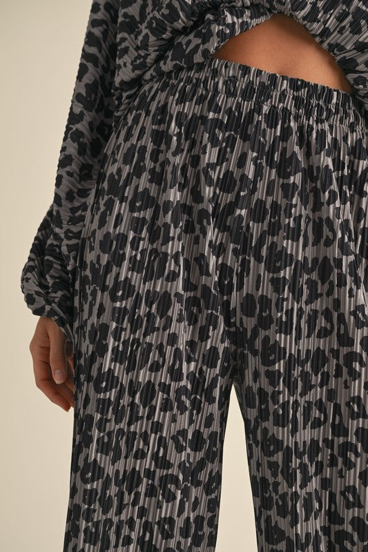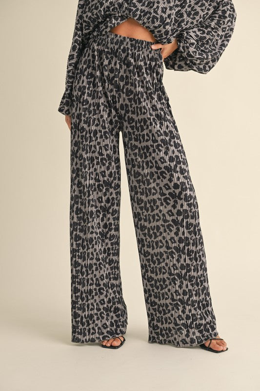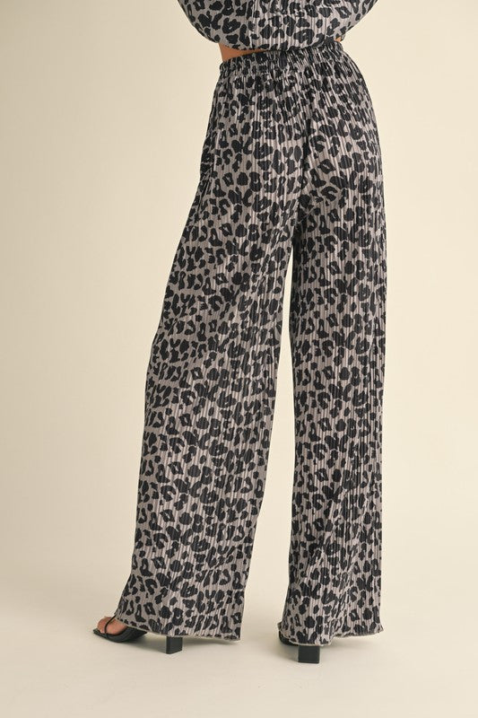 LEOPARD PRINT CRINKLED FABRIC PANTS